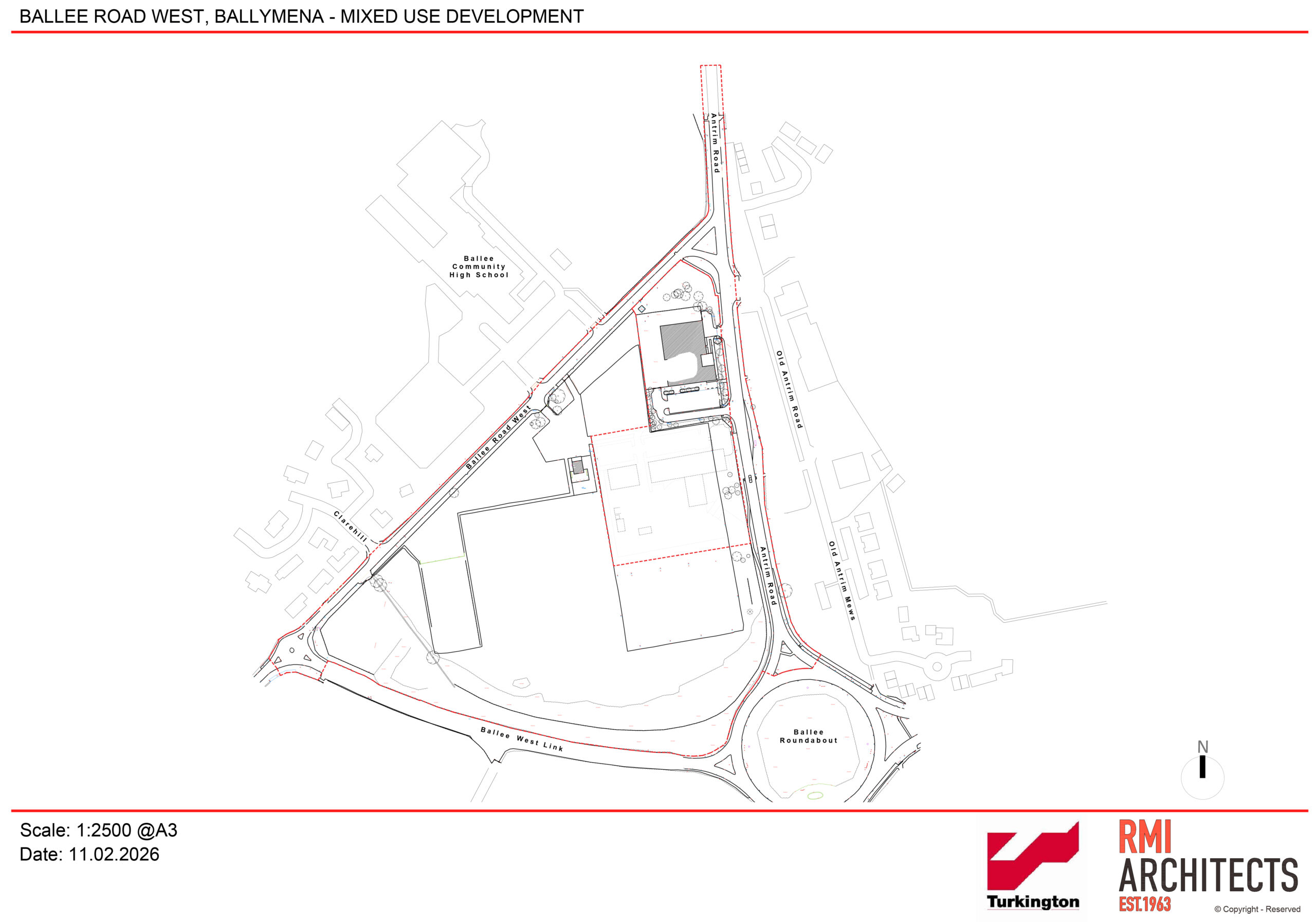 At: Lands immediately to the north west of Ballee Roundabout, and 70m south and east of 121-125 Antrim Road, 60m east of Nos 17 & 19, Ballee Road West and 60m east of Nos 1, 2 and 4 Clarehill, Ballymena BT42 2LE